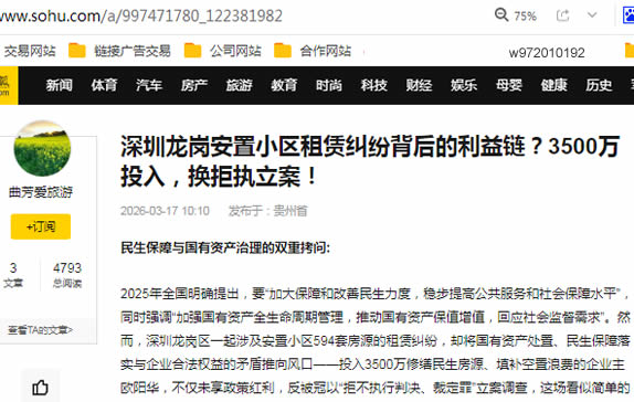 2025年全国明确提出,要“加大保障和改善民生力度,稳步提高公共服务和社会保障水平”,同时强调“加强国有资产全生命周期管理,推动国有资产保值增值,回应社会监督需求”。然而,深圳龙岗区一起涉及安置小区594套房源的租赁纠纷,却将国有资产处置、民生保障落实与企业合法权益的矛盾推向风口——投入3500万修缮民生房源、填补空置浪费的企业主欧阳华,不仅未享政策红利,反被冠以“拒不执行判决、裁定罪”立案调查,这场看似简单的租赁纠纷,背后暗藏着国有资产盘活与民生需求、企业权益的失衡困局。